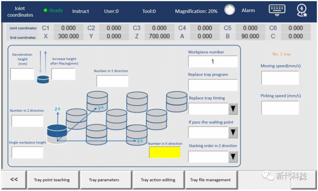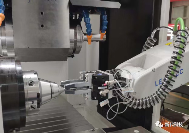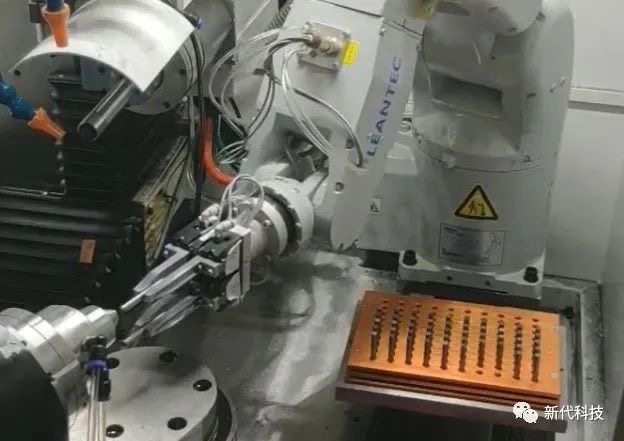 The industrial robot and the material tray are installed outside the machine tool, which is convenient for operation and reduces interference. In this way, more material trays can be placed outside the machine, and the overall loading and unloading time is less than 10s.
